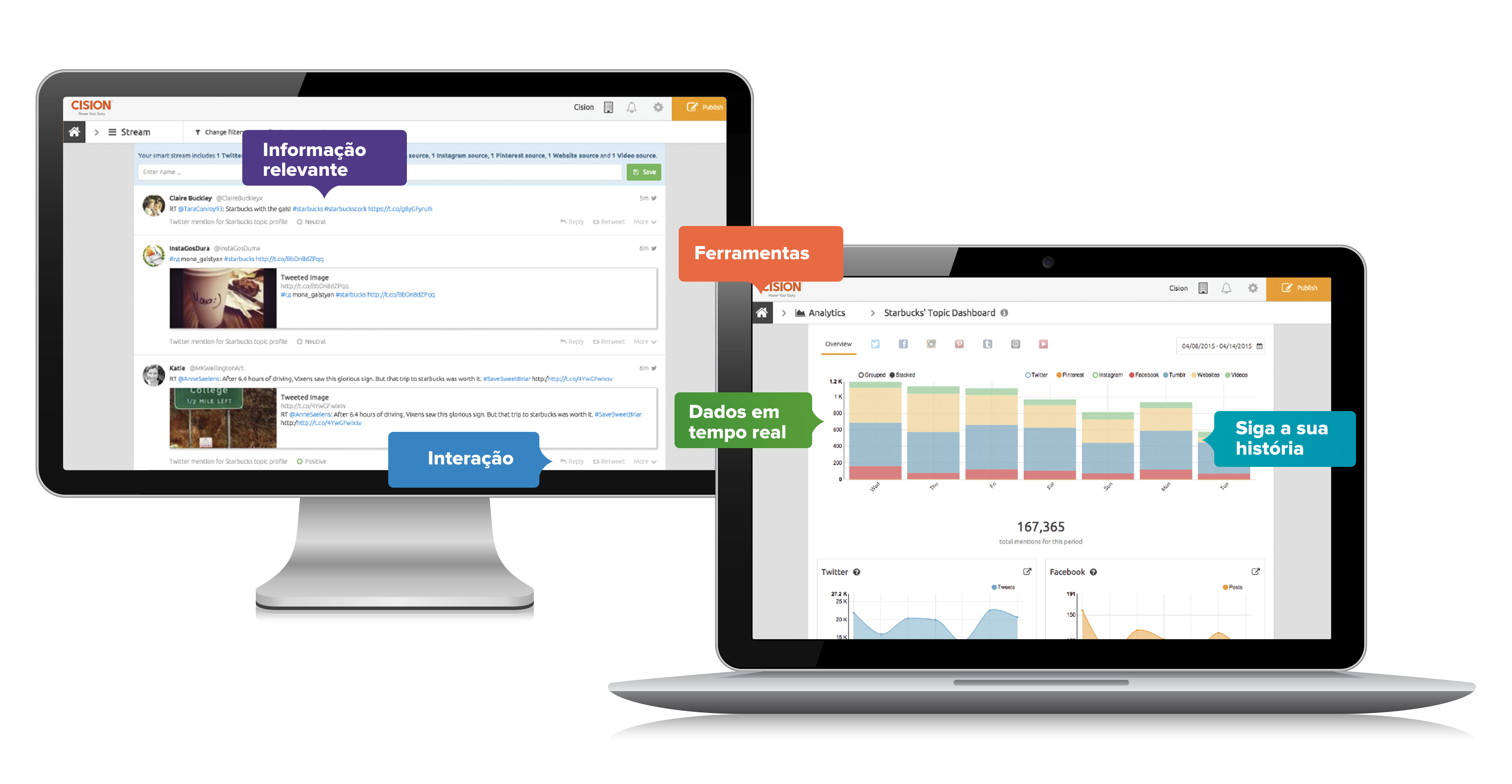Monitorização, análise e engagement numa plataforma única e intuitiva para gestão de social media.